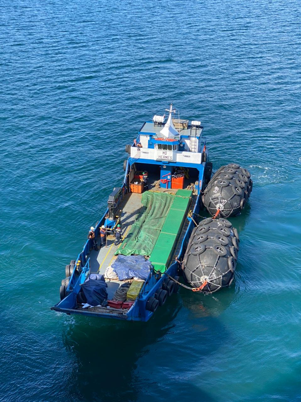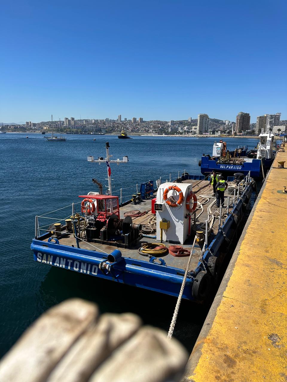 Mantencion a terminales maritimos con barcazas de apoyo para materiales y transporte de cargas.